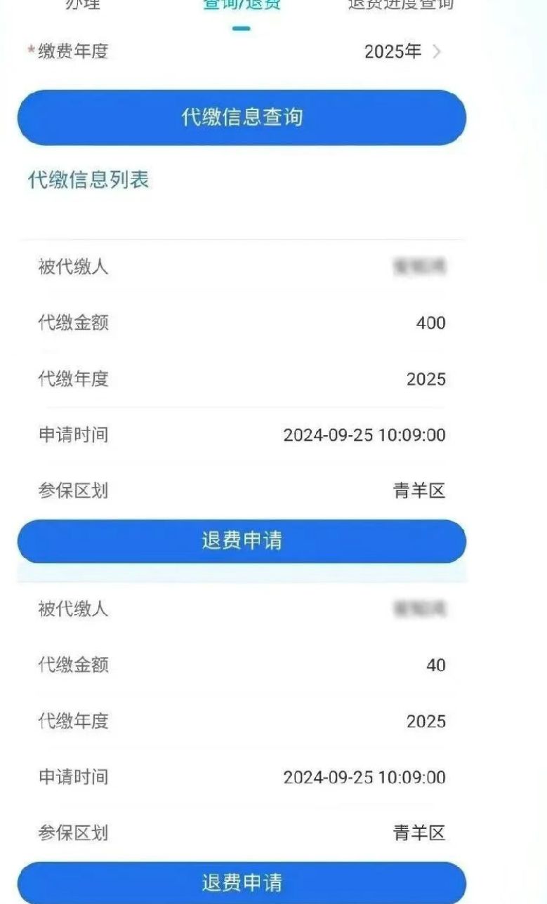 代缴完成后,可通过 “查询 / 退费” 功能: